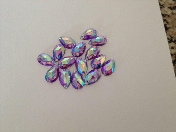• Pack of 30 7mm x 12mm Teardrop Purple AB Sew On (Acryllic)