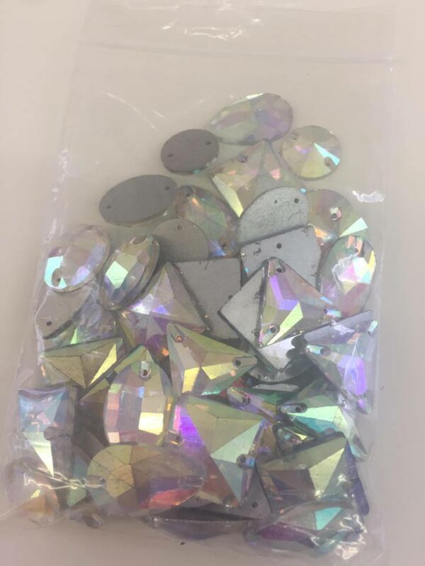 POT LUCK BAGS of 50 Crystal AB Sew On Jewellery Stones (SECONDS, MIXED SIZES/SHAPES)